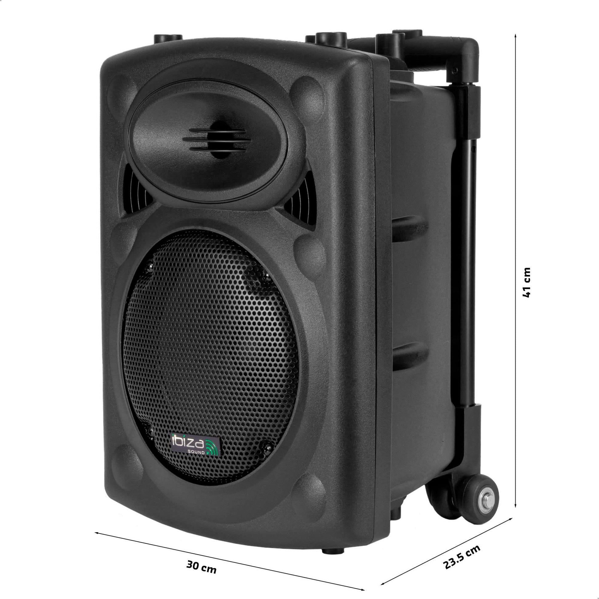 - SONIDO: Equipado con la calidad de sonido de IBIZASound, este sistema portátil se convertirá en tu imprescindible. Con una potencia de 200W RMS, 400W máx., el PORT8VHF-BT es el sistema de sonido portátil por excelencia.