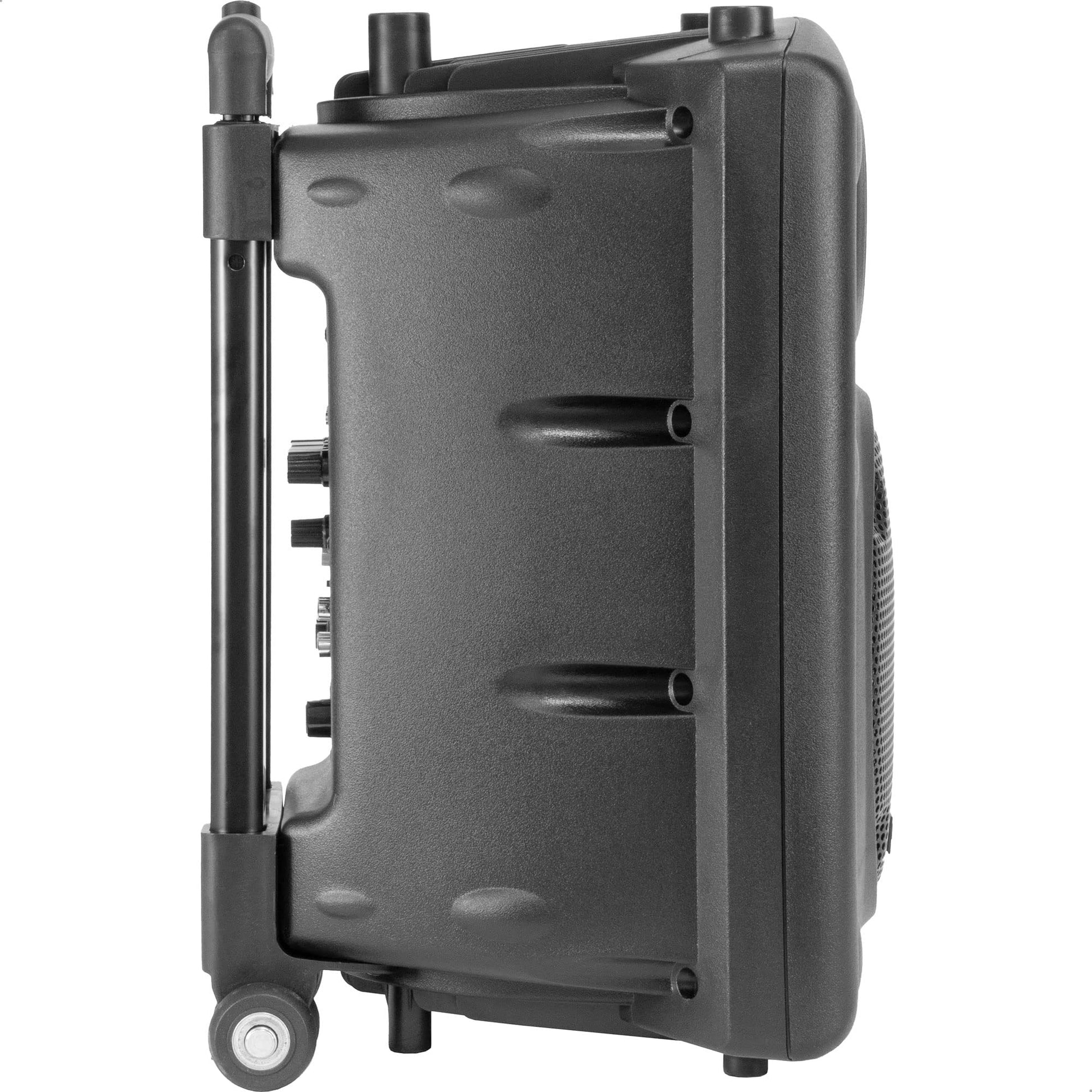 - FACILIDAD DE USO: Con su batería recargable integrada, el PORT8VHF-BT le acompañará en todos sus desplazamientos (autonomía de 4 a 6 horas según el volumen). El asa telescópica y las 4 ruedas de este altavoz portátil harán que el transporte sea fácil y cómodo.
