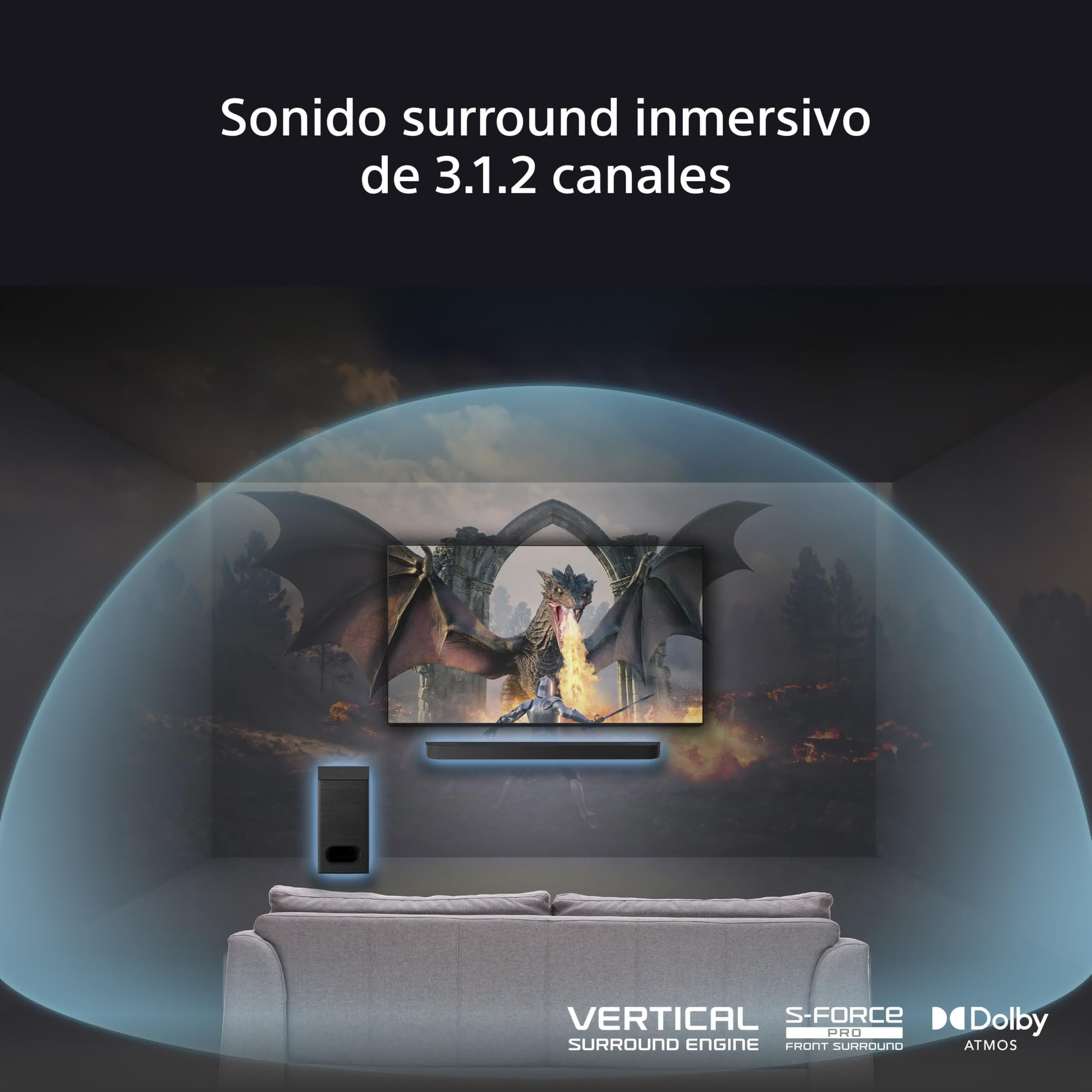 Sony Bravia Theatre Bar 6 con Subwoofer, 3.1.2ch Sonido Envolvente, Altavoces de Haz Ascendente, Dolby Atmos, DTS:X, Voice Zoom 3 con IA, DSEE, Fácil configuración